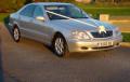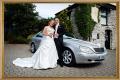 Wedding Cars in Plymouth, Devon. Silver Mercedes S-Class. Co-ordinated ribbons and complimentary champagne. Prices and availability can be checked on our website